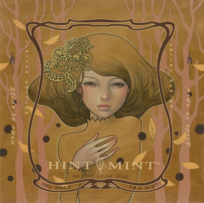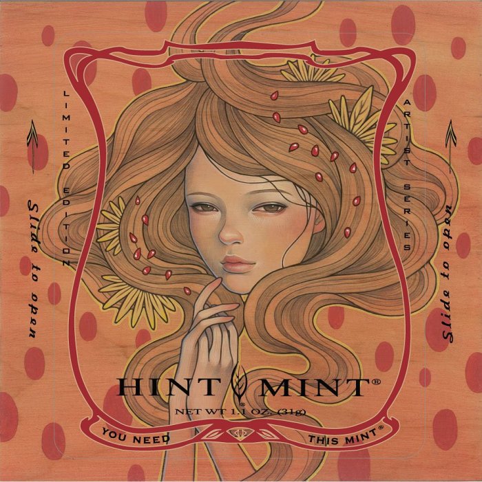 Audrey Kawasaki is one of my favourite artists because she has such an unique style and I love all the feminine details she gives to her paintings. These illustrations she made for Hint Mint. Some other artists they’ve worked with are: Lola, James Jean, Gary Baseman and Glenn Barr.
