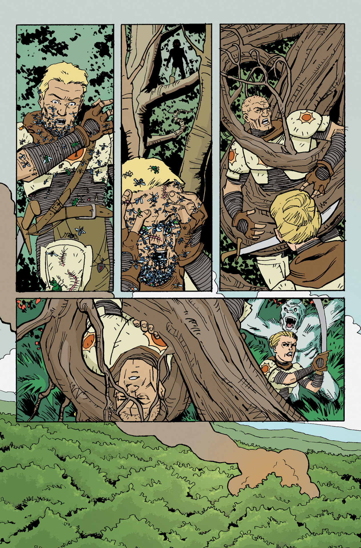 Sandy Jarrell understands the language of comics; choreographing a page, using space effectively, contrasting light & dark. If you read Jarrell’s blog “funnybookin'”, you’ll see that he has a great reverence for the old masters like C.C. Beck for instance. So, no wonder his characters tend to run lighter, more true to life than many of the dark & gritty comics on the market today.