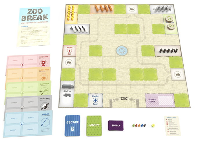 “A computer malfunction at the Bedlam Zoo has short-circuited the gates for all the enclosures and the animals are slowly but surely escaping toward the zoo exit. Your goal is simple: work with your fellow zookeepers to get all the animals back in their enclosures and lock them in before too many exit the zoo.
