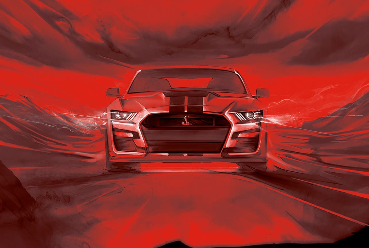 Illustrator Alexis Marcou’s self initiated passion project titled ”Dark Horse’’, taps into the raw DNA of the Ford Mustang – specifically the Shelby era – and channels it into a visual language that feels both timeless and future-facing.