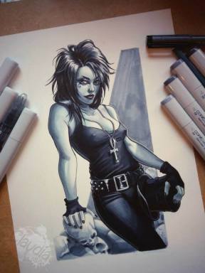 Origin: Claudia Ianniciello AKA “ScarletGothica” graduated in Architecture at the Roma Tre University and attended a professional school for illustrators called Scuola Internazionale di Comics. In addition to cover art, she’s also worked in comics as a colorist.